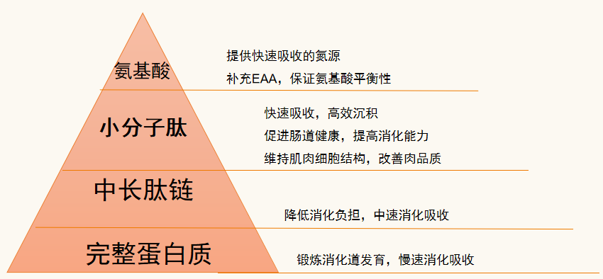 1.3中长肽链(中):降低消化负担,中速消化吸收,提供基础氮源;